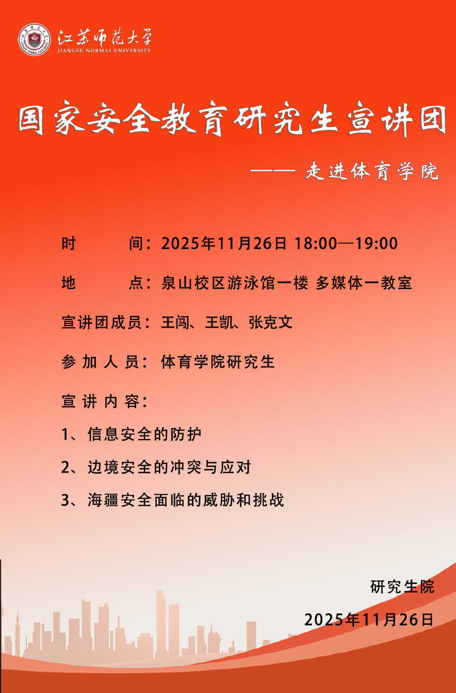 国家安全教育研究生宣讲团走进体育学院