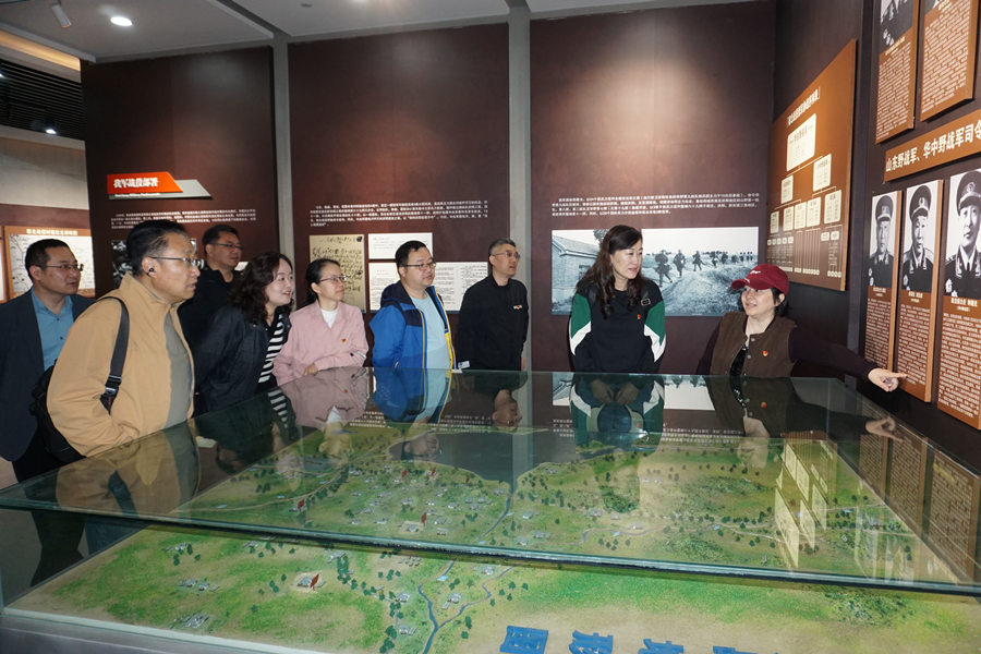 宿北大战全歼国民党整编69师2.1万余人,是解放战争初期整个华东战场乃至全国战局第一个重大转折的标志。上午9时30分许,支部到达宿北大战纪念馆。门口,一座栩栩如生、姿态各异的29尊宿北大战无名英雄群雕,吸引支部党员驻足观赏。他们有的怀抱炸药包,有的肩扛弹药箱,有的匍匐前进、有的瞄准敌人射击,有的投掷手榴弹,生动再现了当时的战斗场景。进入大门,一座庄严肃穆的纪念塔高耸矗立,塔上由陈毅元帅题写的 “宿北大战马陵山革命烈士纪念塔”14个遒劲大字熠熠生辉,这是为了纪念宿北大战和在战斗中牺牲的2191名指战员而修建。支部党员列队来到塔前,肃立鞠躬,缓步绕行一周,深情瞻仰了烈士纪念塔。跟随着讲解员的脚步,支部党员走进宿北大战纪念馆,重点参观了战争厅、支前厅、胜利厅和英烈厅4个主题展厅,详细了解了“战前形势、中共中央军委指导筹划、战役部署、战役经过、人民战争、庆功祝捷、英名永存、永远缅怀”8个篇章的内容。大家一边听讲解员介绍,一边询问有关细节,不时驻足端详、凝神思考。馆内一张张历史照片、一件件珍贵实物,一个个还原场景,让党员重温了宿北大战的辉煌胜利历史,追忆了革命先烈的英勇事迹。在参观学习中,有一位将军的照片吸引大家久久驻足凝视,他是刘先胜,我校的首任校长。在宿北大战中,刘校长担任华中野战军参谋长,并协助粟裕指挥作战。宿北战役的胜利,他的参谋工作对此起到了关键作用。看到熟悉而亲切的面孔,更是激起大家了解宿北大战的兴趣和热情,围绕刘校长的戎马生涯,大家也在现场开展了学习交流讨论,并表达了崇敬和自豪。